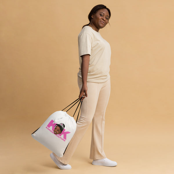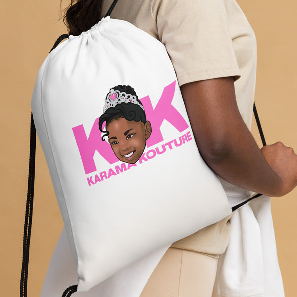 Show your love for Karama Kouture in style with a cool drawstring bag. It's a must-have essential that can be worn as a backpack with drawstring closure at top, and narrow, contrasting shoulder straps.