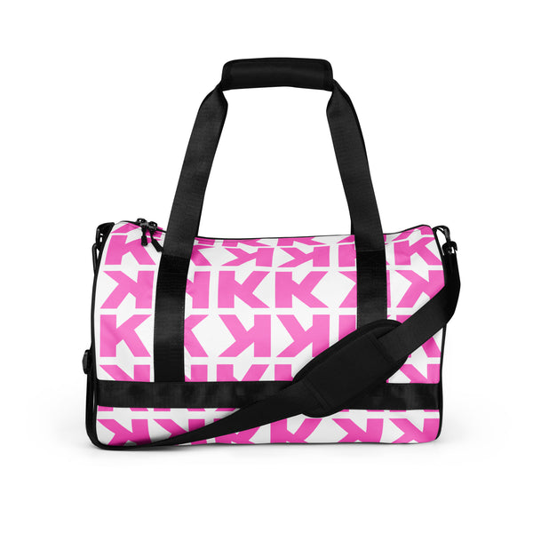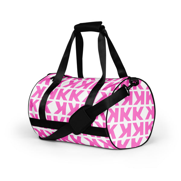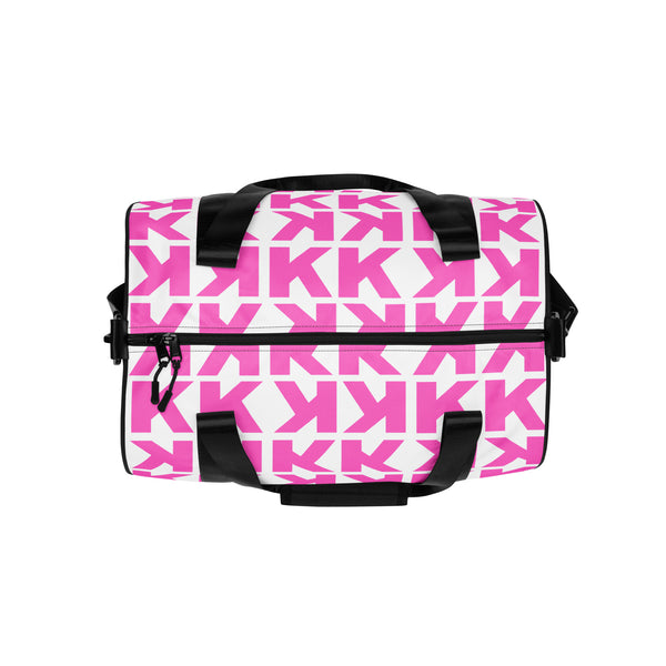Introducing the KK Monogram print duffle bag, the perfect carry on! Made from 100% polyester and sturdy, water-resistant fabric, this bag is fun meets function. And it’s got pockets!