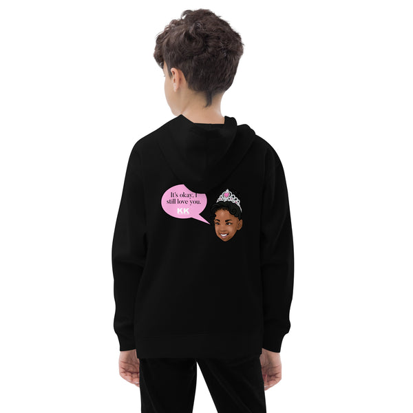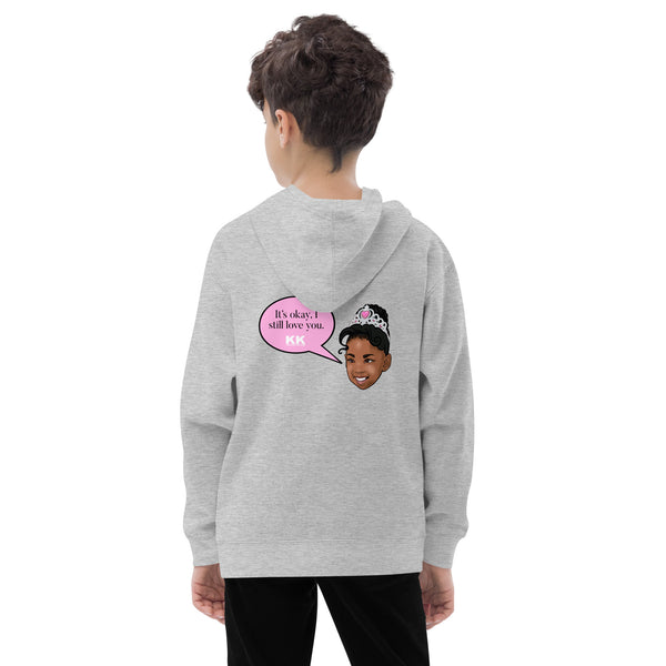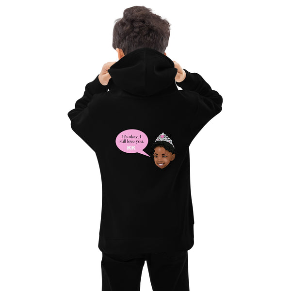 Karama’s Katchphrase “it’s okay, I still love you” is printed on the back of this comfortable sweater.